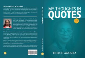 My Thoughts in Quotes is a collection of sayings and meditation of Ibukun Awosika over the years. The book is a treasure trove that will require you to dig diligently to reach the gold.